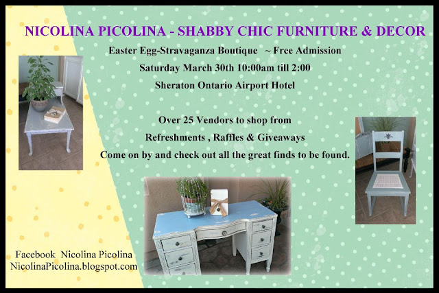 Come on by & say hi. There will be 30 other vendors to shop from. This started out as a small get together for small business women to network at someones home and the interest response was so large that it was moved to the Sheraton Ontario Airport Hotel. I will be there selling my Shabby Chic Furniture & home decor. Bring cash as I am not too sure how many people accept credit cards. I myself accept credit.